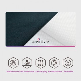 Aerosilver™ es una fibra/hilo para el cuidado de la salud, que aumenta su rendimiento y resistencia al alejar el sudor del cuerpo hacia la capa exterior del tejido, que también contiene un componente de iones de plata (Ag+) que elimina varios gérmenes nocivos y gérmenes causantes de olores.